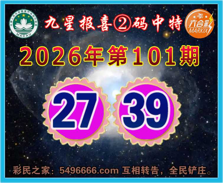 101期:《九星报喜》 ☘️②码中特☘️【27.39】开:39