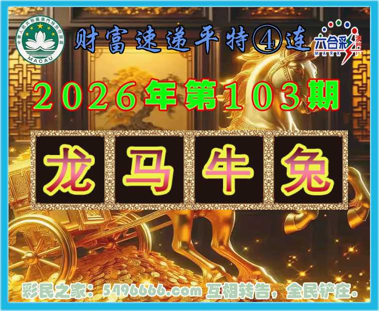 103期:【财富速递】 🎆平特④连🎆【龙马牛兔】开:龙03,马01,牛06,兔04准