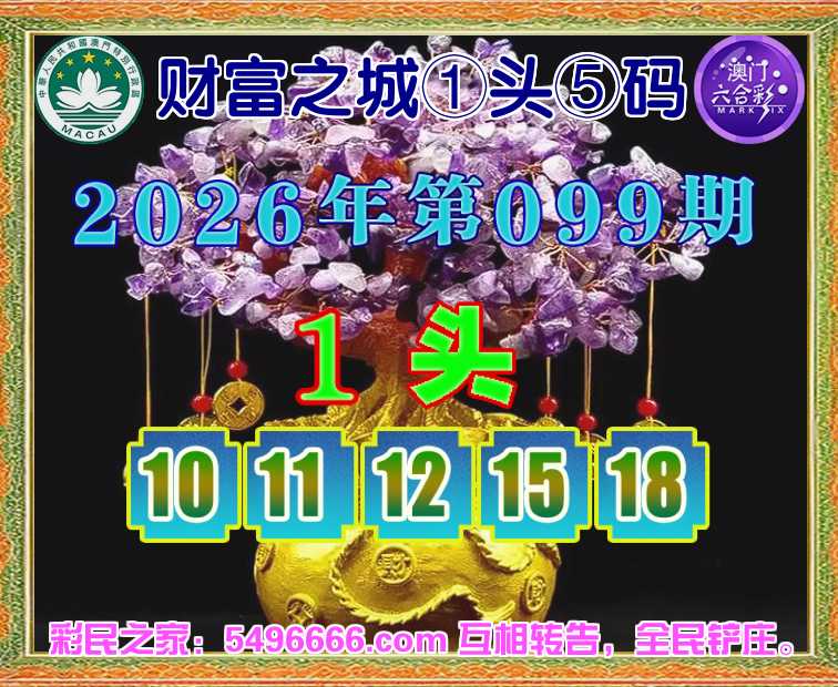 099期: 财富之城 🌲①头⑤码🌲【1头主:10.11.12.15.18】开:12