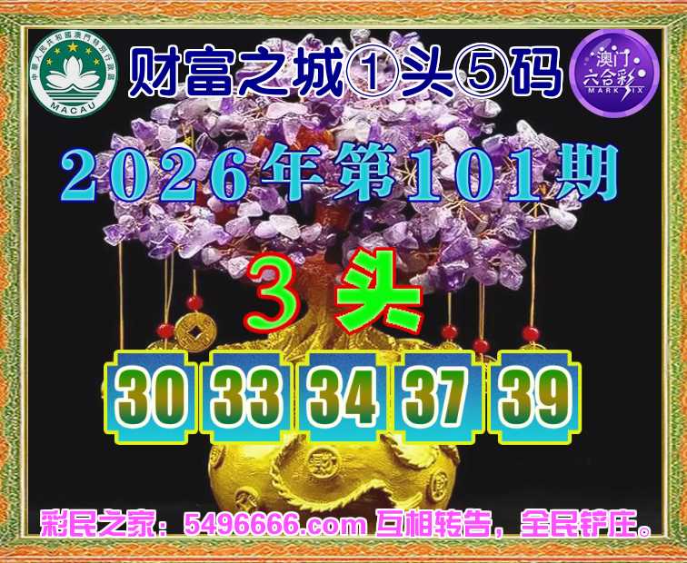 101期: 财富之城 🌲①头⑤码🌲【3头主:30.33.34.37.39】开:39