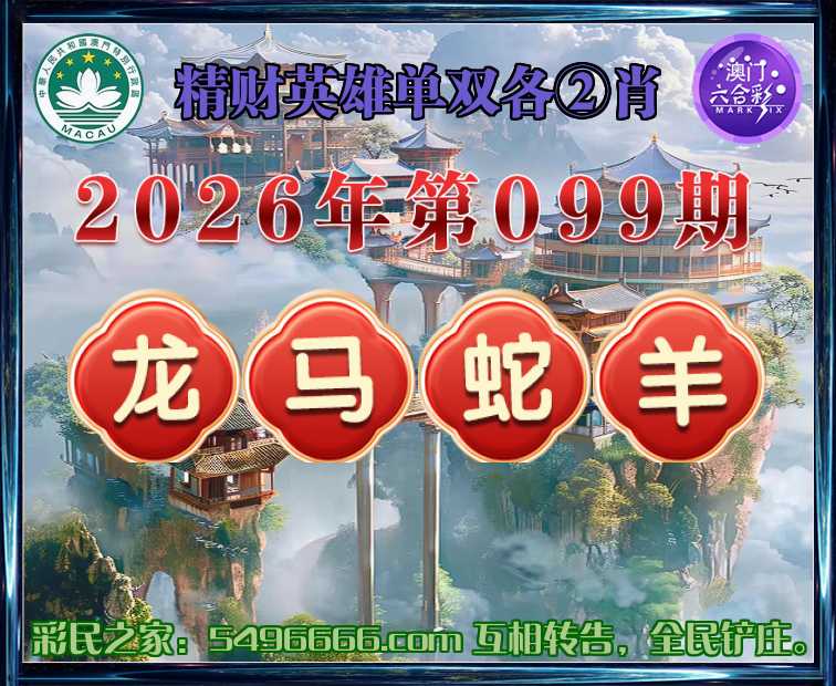 099期:『精财英雄』 🌳单双各②肖🌳【龙.马.蛇.】开:羊12
