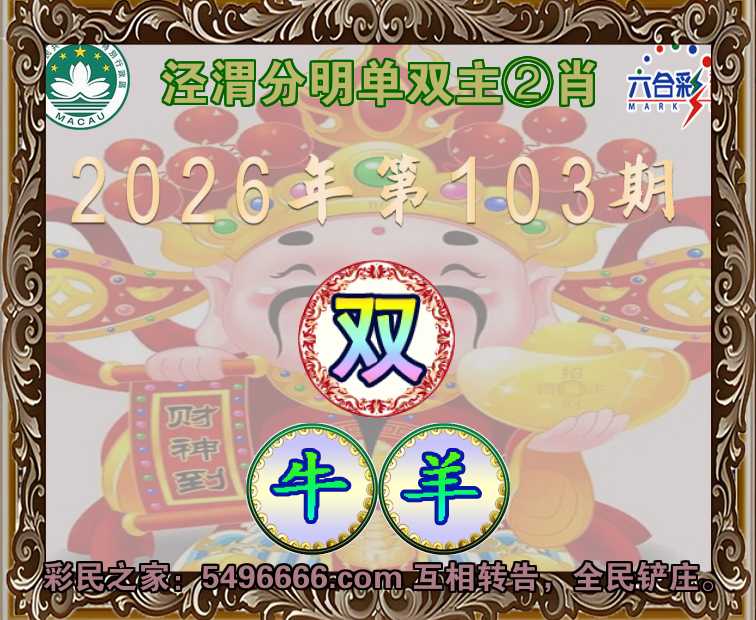 103期:〖泾渭分明〗 🧧单双主②肖🧧【-羊】开:06