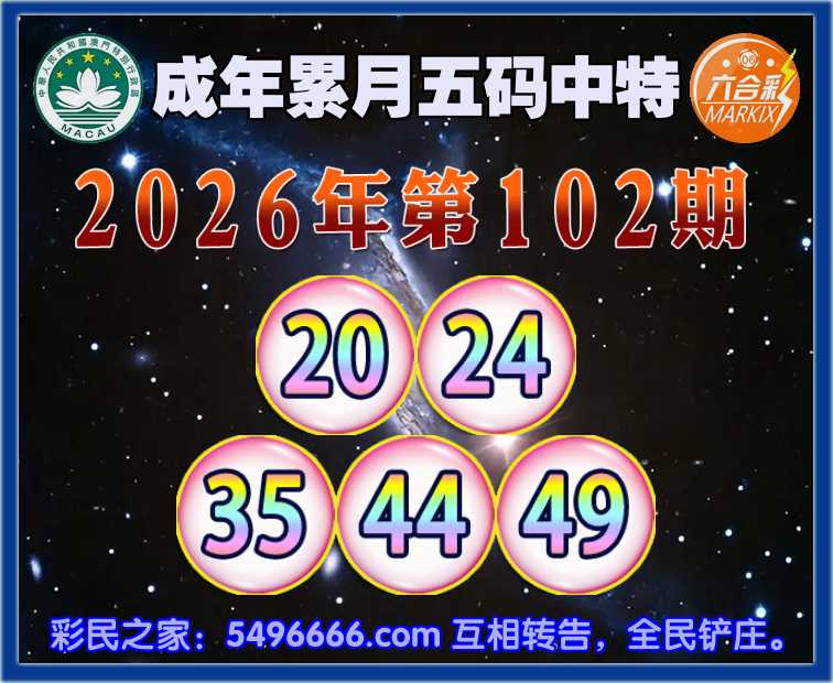 102期:【成年累月】五码中特✨【20.24.35.44.49】开:20