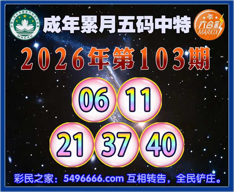103期:【成年累月】五码中特✨【06.11.21.37.40】开:06