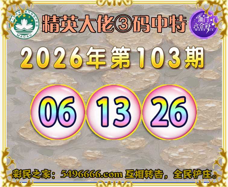 103期: 🎉《精英大佬》 🎉③码中特🎉【06.13.26】开:06