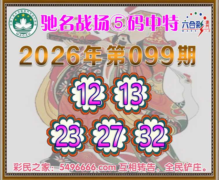 099期:【驰名战场】 🪢⑤码中特🪢【12.13.23.27.32】开:12