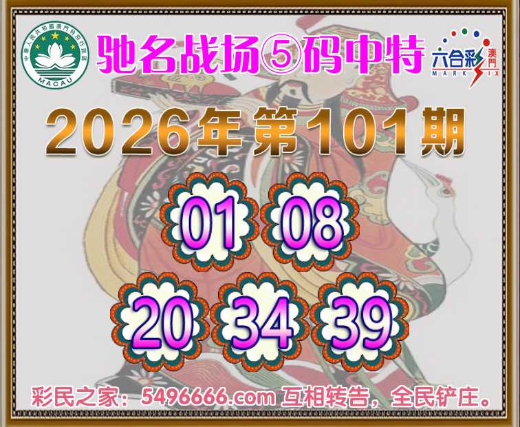 101期:【驰名战场】 🪢⑤码中特🪢【01.08.20.34.39】开:39