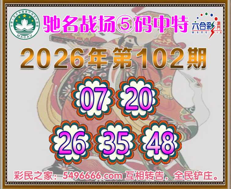 102期:【驰名战场】 🪢⑤码中特🪢【07.20.26.35.48】开:20