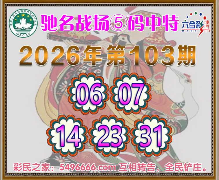 103期:【驰名战场】 🪢⑤码中特🪢【06.07.14.23.31】开:06