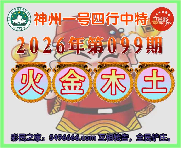 097期:【神州一号】 🌳四行中特🌳【金.木.水.土】开:火11