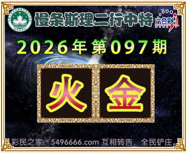 096期:【慢条斯理】 ♠️二行中特♠️【火.】开:金43