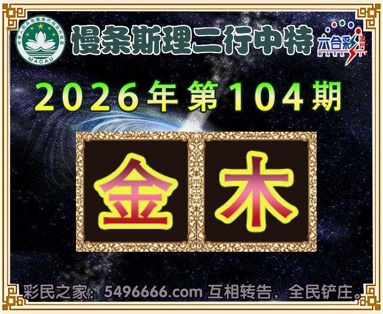 104期:【慢条斯理】 ♠️二行中特♠️【金.木】开:00准