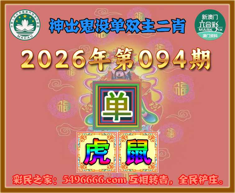 094期:『神出鬼没』 ♥️单双主二肖♥️【-鼠】开:虎17