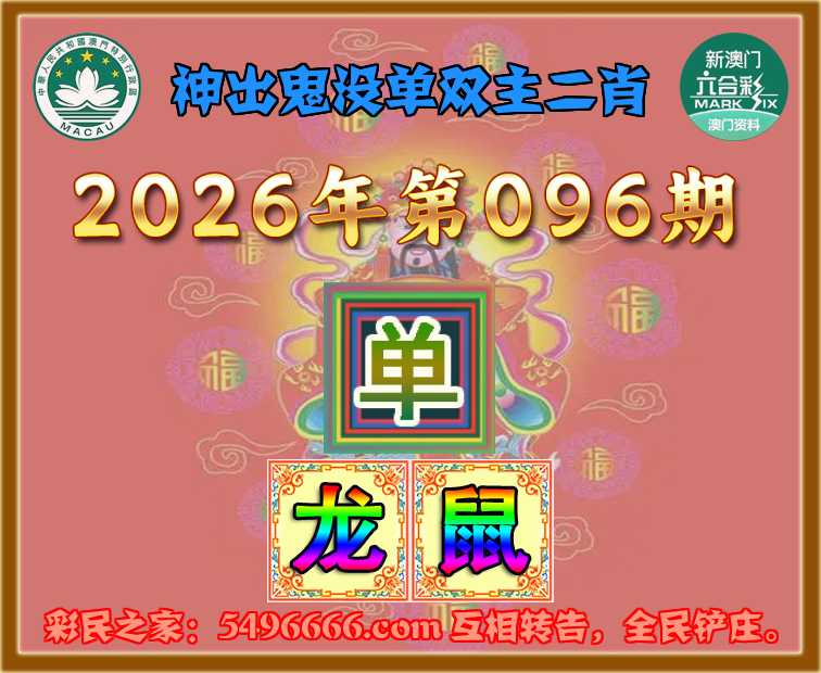 096期:『神出鬼没』 ♥️单双主二肖♥️【-龙】开:鼠43