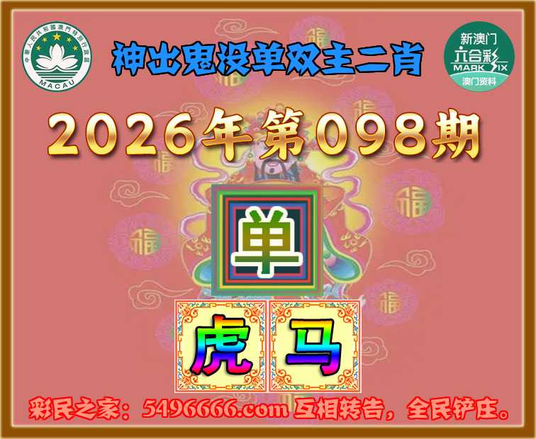 098期:『神出鬼没』 ♥️单双主二肖♥️【-马】开:虎17