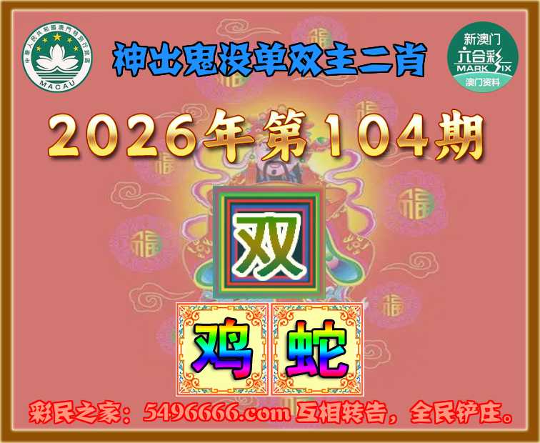 104期:『神出鬼没』 ♥️单双主二肖♥️【双-鸡蛇】开:00准