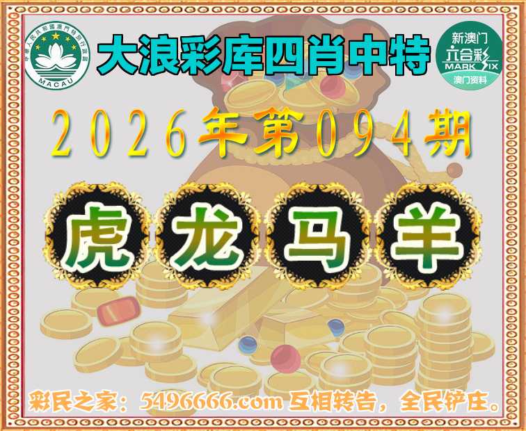 094期:《大浪彩库》 🏅四肖中特🏅【.龙.马.羊】开:虎17