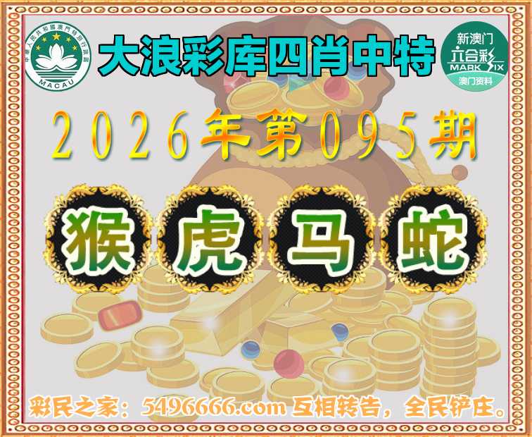 095期:《大浪彩库》 🏅四肖中特🏅【.虎.马.蛇】开:猴35