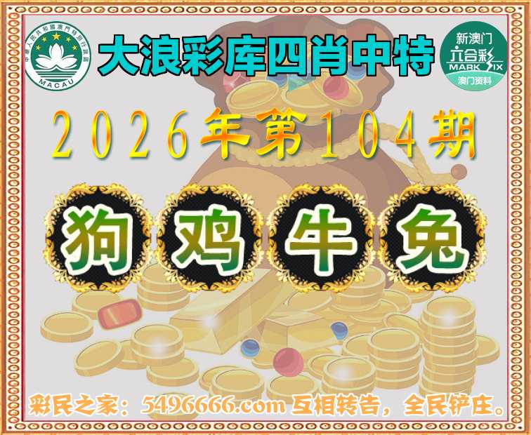 104期:《大浪彩库》 🏅四肖中特🏅【狗.鸡.牛.兔】开:00准