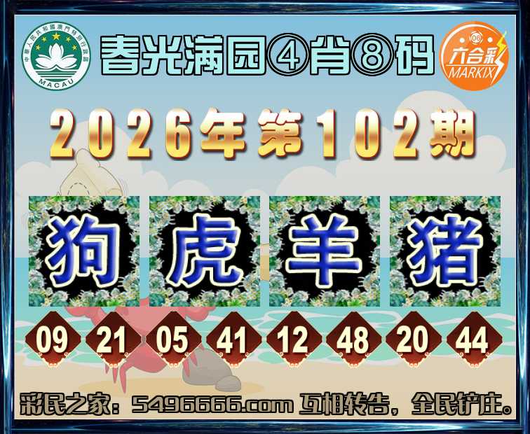 104期:【春光满园】 🚲④肖⑧码🚲【狗蛇羊猪】开:00准