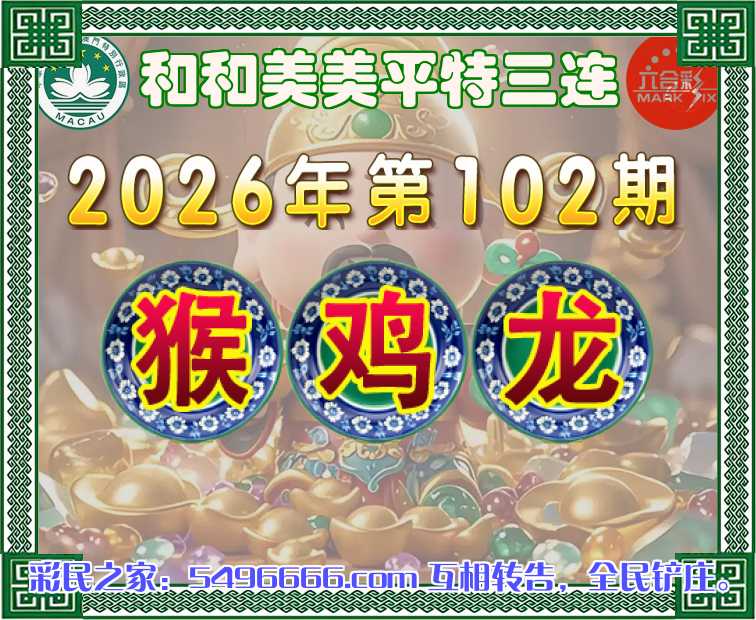102期:《和和美美》 🪢平特三连🪢【猴鸡龙】开:猴47,鸡46,龙03准