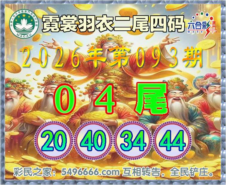 093期: 🚡『霓裳羽衣』 🚡二尾四码🚡【04尾主:20.40.34.44】开:40