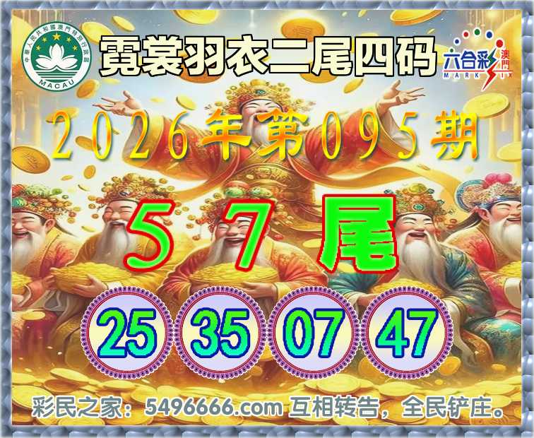 095期: 🚡『霓裳羽衣』 🚡二尾四码🚡【57尾主:25.35.07.47】开:35
