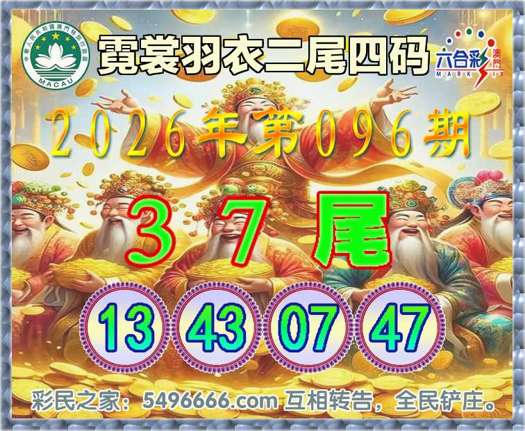 096期: 🚡『霓裳羽衣』 🚡二尾四码🚡【37尾主:13.43.07.47】开:43