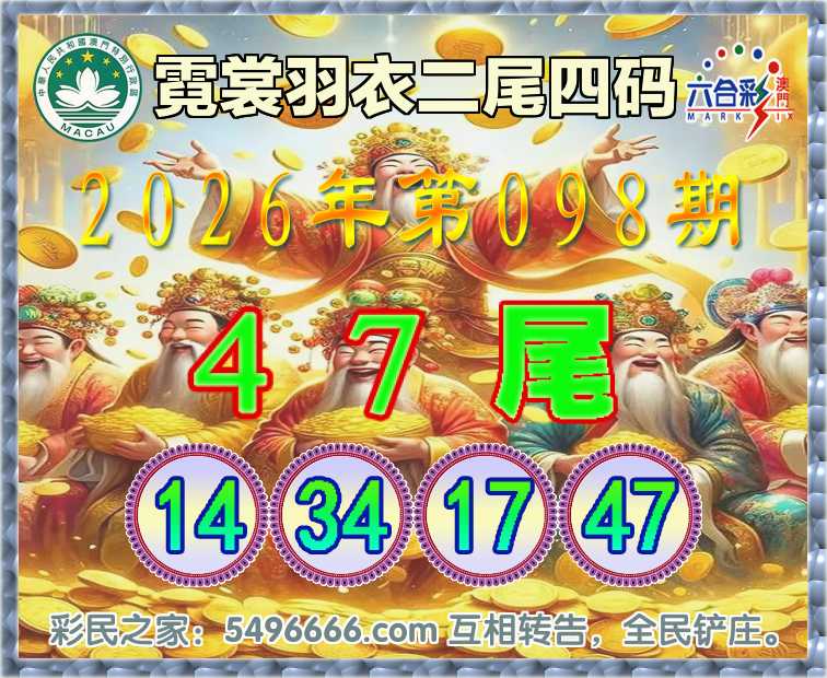 098期: 🚡『霓裳羽衣』 🚡二尾四码🚡【47尾主:14.34.17.47】开:17