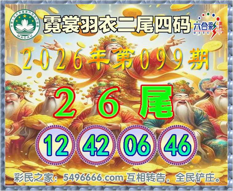 099期: 🚡『霓裳羽衣』 🚡二尾四码🚡【26尾主:12.42.06.46】开:12