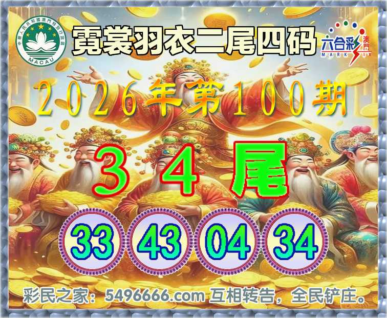100期: 🚡『霓裳羽衣』 🚡二尾四码🚡【34尾主:33.43.04.34】开:33
